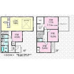 | 間取り | 4LDK 間取り内訳:リビングダイニングキッチン 20帖(1階)・洋室 8帖(2階)・洋室 5.2帖(2階)・洋室 5.2帖(2階)・洋室 5.2帖(2階) |