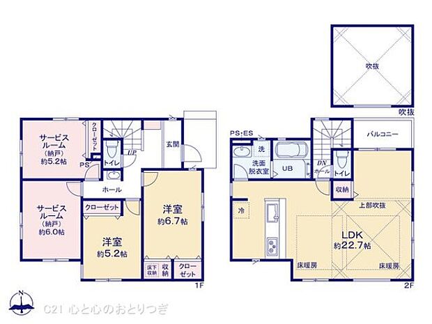 | 間取り | 2SLDK 間取り内訳:リビングダイニングキッチン 22.7帖(2階) |