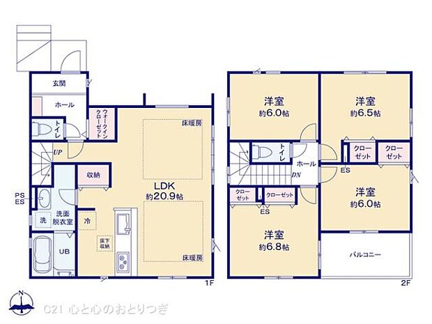 | 間取り | 4LDK 間取り内訳:リビングダイニングキッチン 20.9帖(1階) |