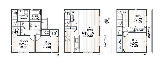 間取り内訳:リビングダイニングキッチン 20帖(2階)