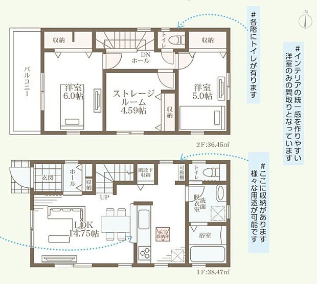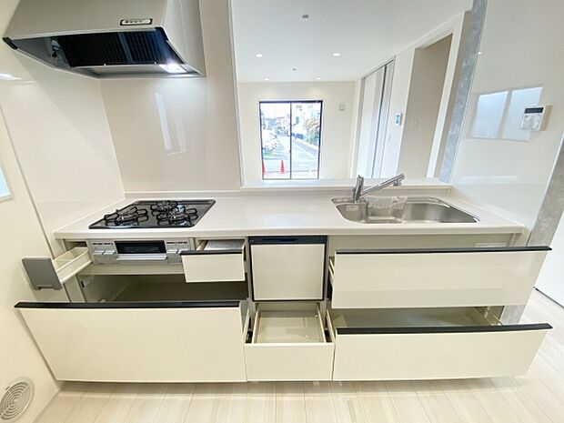 全室南向きにつき明るいお住まいです。ストレージルームやパントリー、廊下収納も完備され豊富な収納力。並