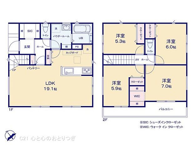 | 間取り | 4LDK 間取り内訳:リビングダイニングキッチン 19.1帖(1階) |