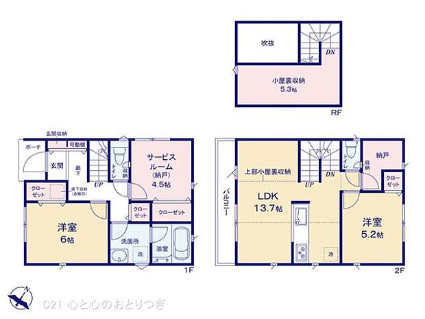 | 間取り | 2SLDK 間取り内訳:リビングダイニングキッチン 13.7帖(2階) |