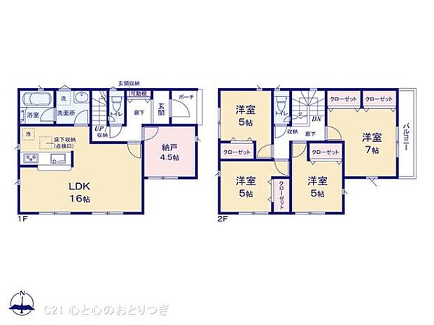 | 間取り | 4SLDK 間取り内訳:リビングダイニングキッチン 16帖(1階) |
