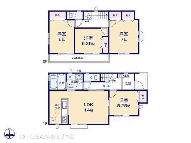 間取り内訳:リビングダイニングキッチン 14帖(1階)