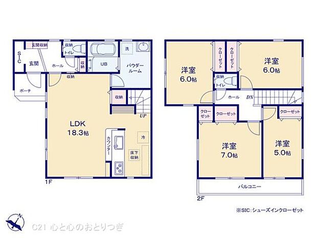 間取り内訳:リビングダイニングキッチン 18.3帖(1階)