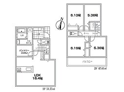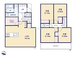 間取り内訳:リビングダイニングキッチン 16.6帖(1階)・収納 4.6帖(1階)・洋室 5.8帖(2階)・洋室 5.3帖(2階)・洋室 6.1帖(2階)・洋室 5.3帖(2階)
