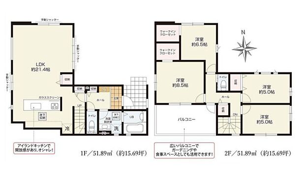 | 間取り | 4LDK 間取り内訳:リビングダイニングキッチン 21.4帖(1階) |