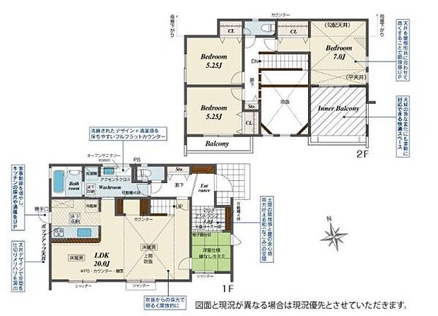 カースペースは2台駐車可能です◎家族の集まるLDK20帖と広々!開放感のある吹抜け♪