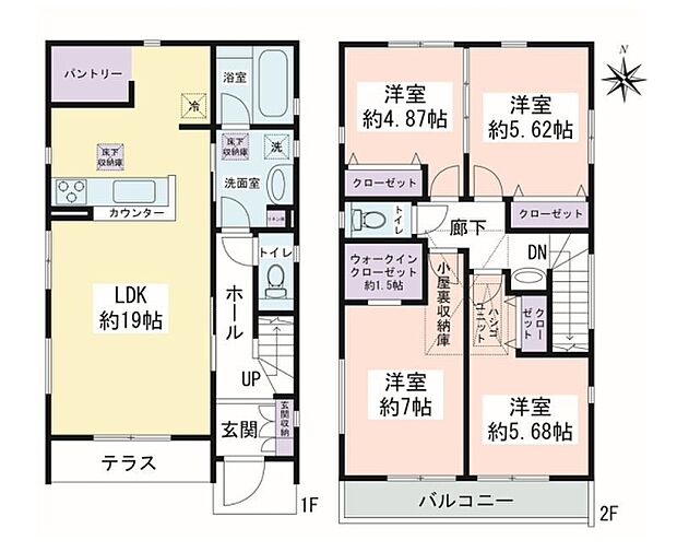 | 間取り | 4LDK 間取り内訳:リビングダイニングキッチン 19帖(1階) |