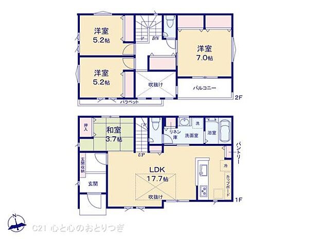 | 間取り | 3LDK 間取り内訳:リビングダイニングキッチン 17.7帖(1階) |