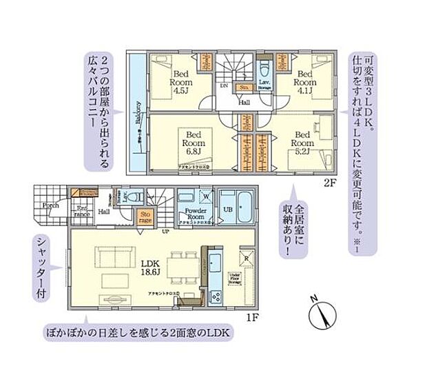 | 間取り | 3LDK 間取り内訳:リビングダイニングキッチン 18.6帖(1階)・洋室 4.5帖(2階)・洋室 6.8帖(2階)・洋室 9.3帖(2階) |