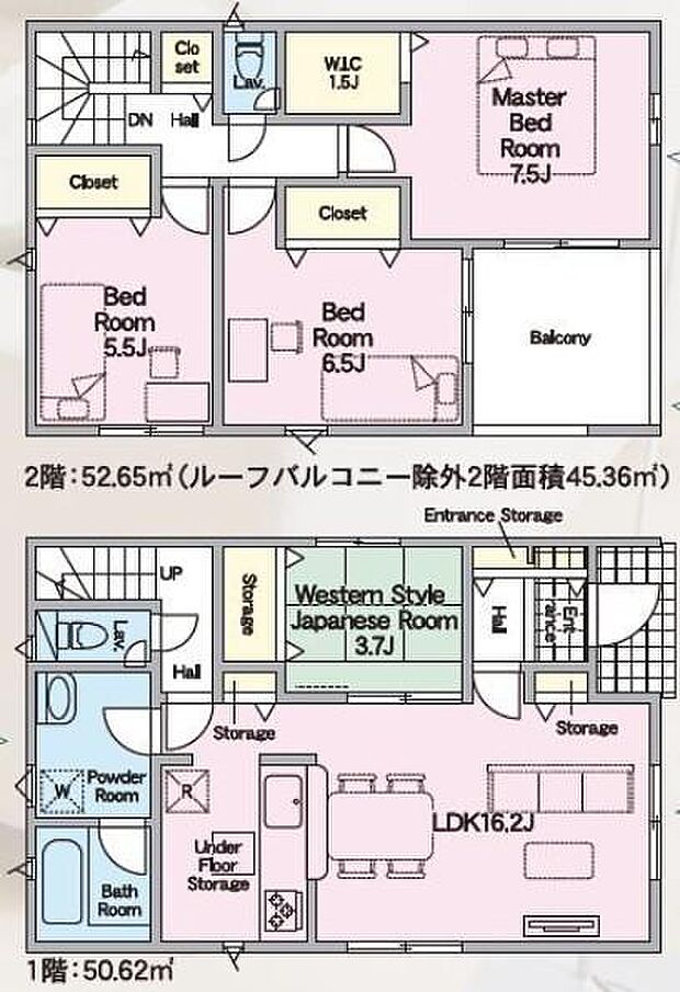 | 間取り | 4LDK 間取り内訳:リビングダイニングキッチン 16.2帖(1階)・和室 3.7畳(1階)・洋室 6.5帖(2階)・洋室 5.5帖(2階)・洋室 7.5帖(2階) |