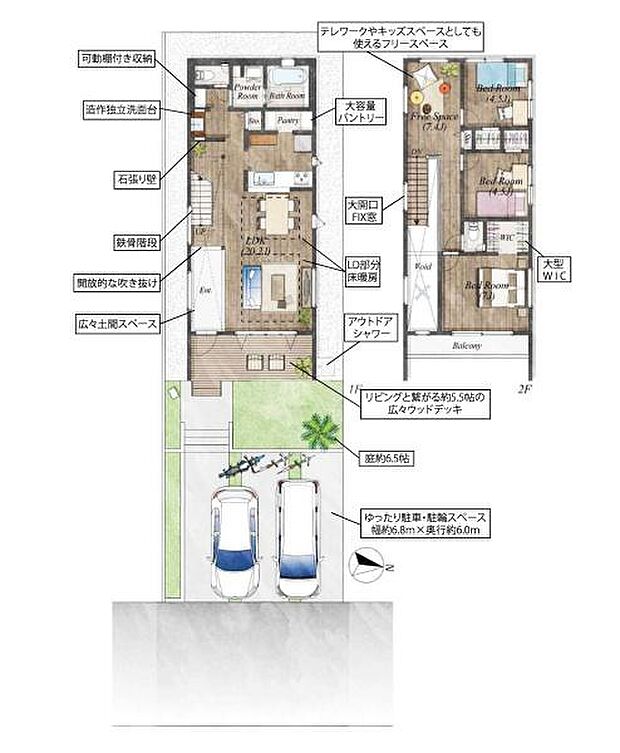| 間取り | 3LDK 間取り内訳:リビングダイニングキッチン 20.2帖(1階)・洋室 4.5帖(2階)・洋室 4.5帖(2階)・洋室 7帖(2階) |