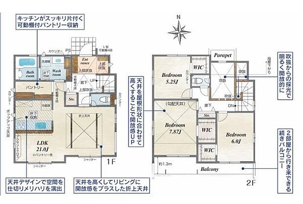 ゆとりある敷地約41坪超。会話が弾む対面キッチンのあるLDK。玄関上部は吹抜になっており開放的。