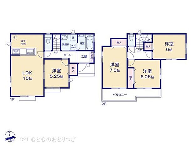 | 間取り | 4LDK 間取り内訳:リビングダイニングキッチン 15帖(1階) |