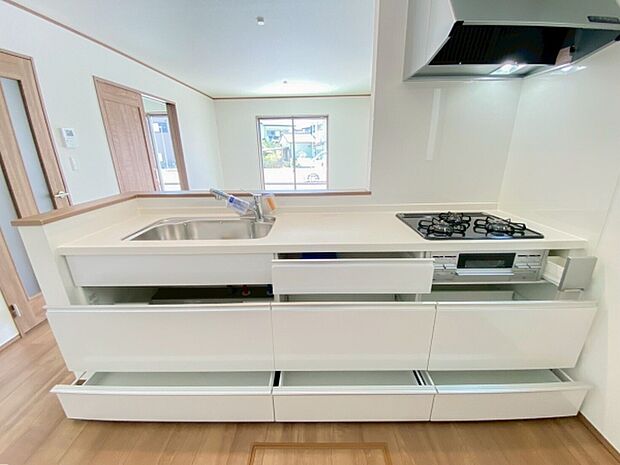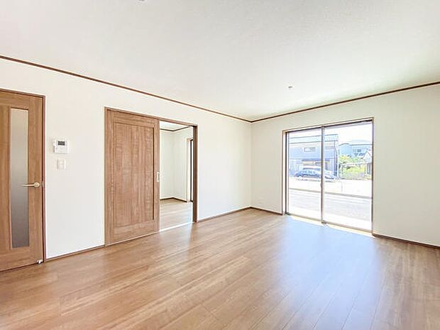 全7棟の開発分譲住宅。南側道路で日当り良好!車2台駐車可。リビングの隣室は一体にも独立にもできます