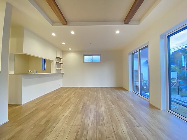 3面採光のLDKは開放感溢れる20帖以上 南道路につき陽当たり 通風良好です。並列2台駐車可能
