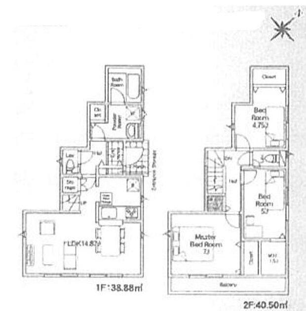 | 間取り | 3LDK 間取り内訳:リビングダイニングキッチン 14.8帖(1階)・和室 7畳(2階)・洋室 5帖(2階)・洋室 4.7帖(2階) |