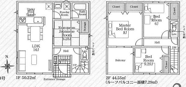 | 間取り | 4LDK 間取り内訳:リビングダイニングキッチン 16帖(1階)・和室 5.2畳(1階)・洋室 8帖(2階)・洋室 6帖(2階)・洋室 5.2帖(2階) |