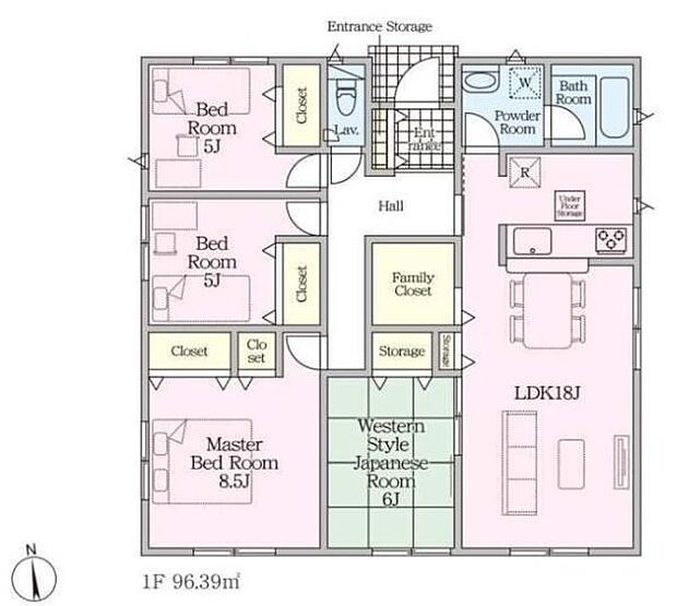 | 間取り | 4LDK 間取り内訳:リビングダイニングキッチン 18帖(1階)・和室 6畳(1階)・洋室 8.5帖(1階)・洋室 5帖(1階)・洋室 5帖(1階) |
