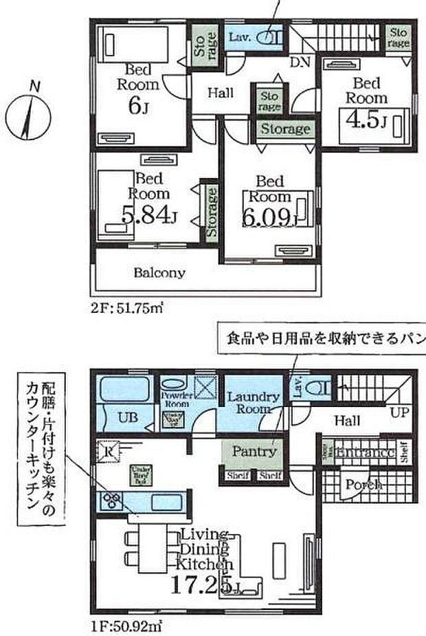 | 間取り | 4LDK 間取り内訳:リビングダイニングキッチン 17.2帖(1階)・洋室 6帖(2階)・洋室 6帖(2階)・洋室 5.8帖(2階)・洋室 4.5帖(2階) |