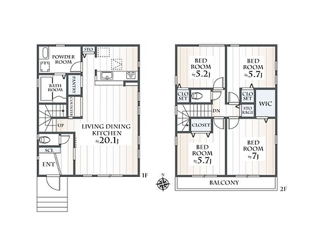 | 間取り | 4LDK 間取り内訳:リビングダイニングキッチン 20.1帖(1階) |