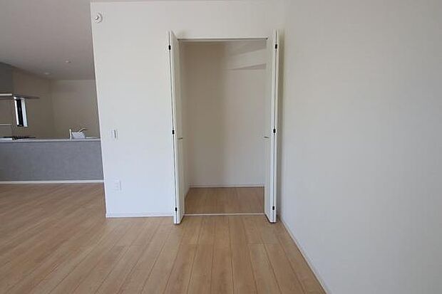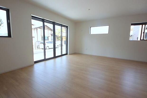 開放感のある角地区画。車2台並列駐車可能です。ご家族が集まるLDKは広々約21帖。