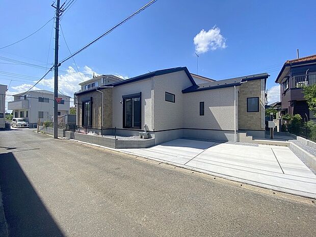19.53帖の南向きLDKが広がる平屋2LDK。食洗機や浴室乾燥機など設備も整い、並列2台駐車のゆとりも確保。完成済につき、実際の動線や採光を現地で確認できる住まいです。