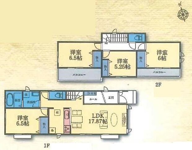 間取り内訳:リビングダイニングキッチン 17.8帖(1階)・洋室 6.5帖(1階)・洋室 6.5帖(2階)・洋室 5.2帖(2階)・洋室 6帖(2階)