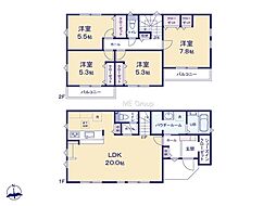 間取り内訳:リビングダイニングキッチン 19.5帖(1階)・洋室 6.2帖(2階)・洋室 5.2帖(2階)・洋室 7.5帖(2階)