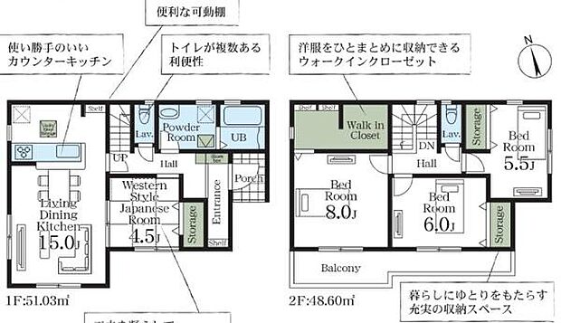 | 間取り | 4LDK 間取り内訳:和室 4.5畳(1階)・洋室 8帖(2階)・洋室 6帖(2階)・リビングダイニングキッチン 15帖(1階)・洋室 5.5帖(2階) |