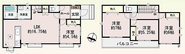 | 間取り | 4LDK 間取り内訳:リビングダイニングキッチン 16.7帖(1階)・洋室 4.5帖(1階)・洋室 7帖(2階)・洋室 5.2帖(2階)・洋室 6帖(2階) |