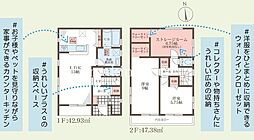 | 間取り | 2SLDK 間取り内訳:リビングダイニングキッチン 15帖(1階)・洋室 9帖(2階)・洋室 5.7帖(2階)・収納 6.7帖(2階) |
