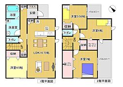 | 間取り | 4LDK 間取り内訳:リビングダイニングキッチン 16帖(1階)・洋室 4.5帖(1階)・洋室 5帖(2階)・洋室 5帖(2階)・洋室 8.7帖(2階) |