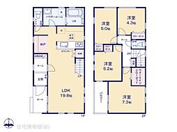 | 間取り | 4LDK 間取り内訳:リビングダイニングキッチン 19.8帖・洋室 7.3帖・洋室 5.2帖・洋室 5帖・洋室 4.3帖 |