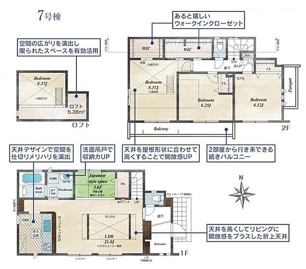 全42棟の開発分譲地。全居室南向き。リビング階段。畳コーナー。ロフト、WIC。駐車2台可(車種による)。