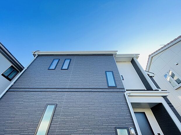 ツートーンの落ち着いたサイディングの外壁がシックな印象の邸宅。ZEH水準の省エネ住宅です。太陽光発電を採用したエコな暮らし。ご見学予約スタートしました。