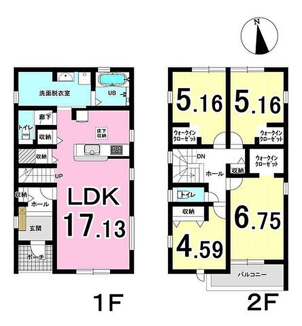 間取り内訳:リビングダイニングキッチン 17.1帖・洋室 5.1帖・洋室 5.1帖・洋室 4.5帖・洋室 6.7帖