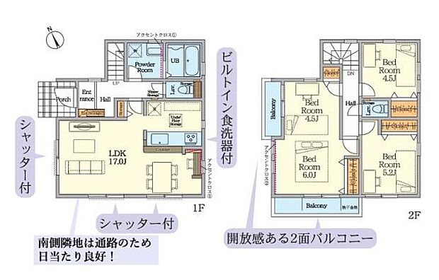 | 間取り | 3LDK 間取り内訳:リビングダイニングキッチン 17帖(1階)・洋室 10.5帖(2階)・洋室 4.5帖(2階)・洋室 5.2帖(2階) |