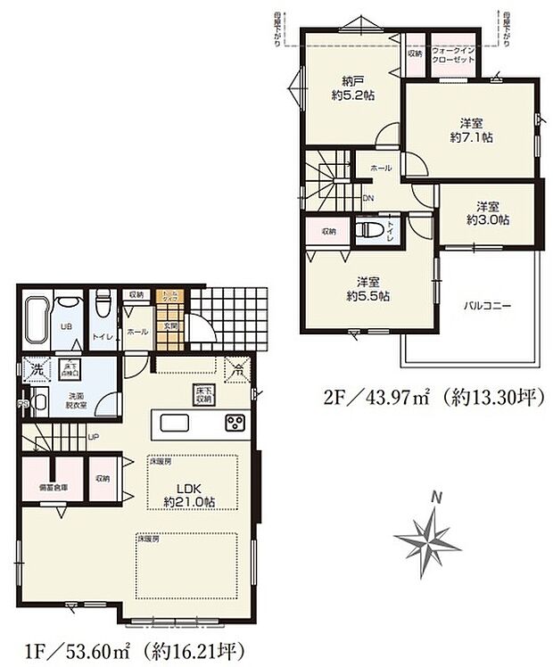 • 「建築条件付き土地」の「建物プラン例」は、土地購入者の設計プランの一例であり、プランの採用可否は任意です。