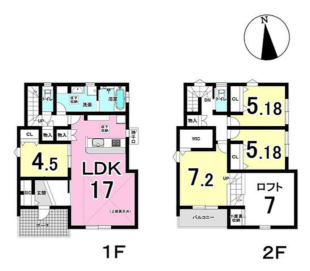 間取り内訳:リビングダイニングキッチン 17帖・洋室 4.5帖・洋室 7.2帖・洋室 5.1帖・洋室 5.1帖