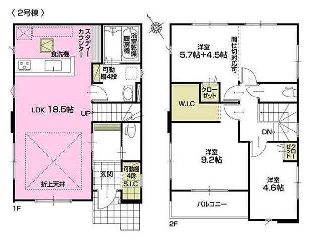 | 間取り | 3LDK 間取り内訳:リビングダイニングキッチン 18.5帖(1階)・洋室 9.2帖(2階)・洋室 4.6帖(2階)・洋室 10.2帖(2階) |