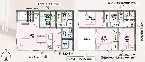 生活・買物便利な住環境♪リビング広々18帖♪2階は全室6帖以上♪