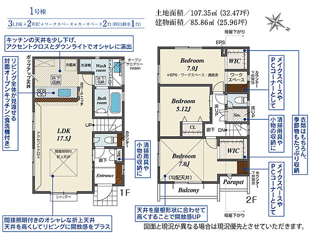 建物面積 85.45m2(約25.84坪)~85.86m2(約25.97坪)