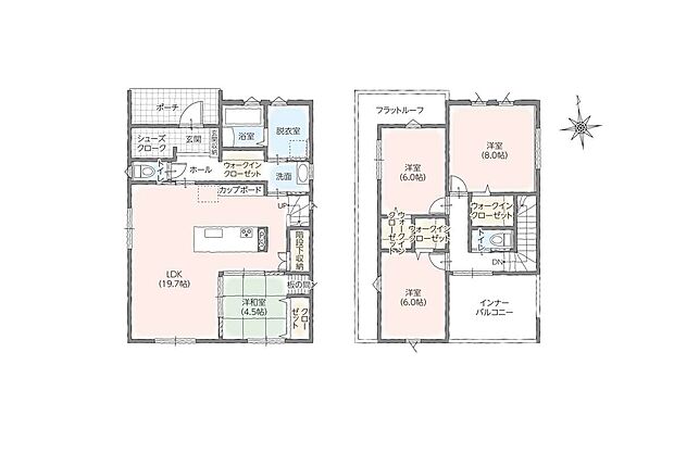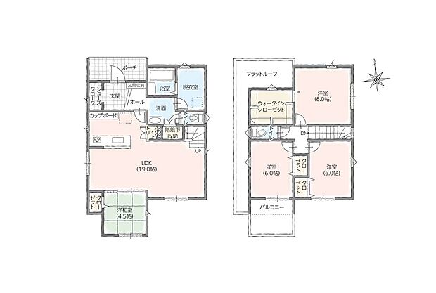 | 土地面積 | 181.90m2(1号棟)~182.07m2(2号棟) | ||