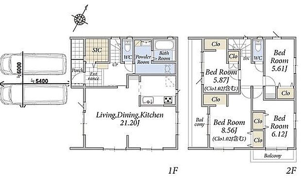 並列2台駐車可能なカースペース付き。間口11mの整形地に誕生する新邸です。
