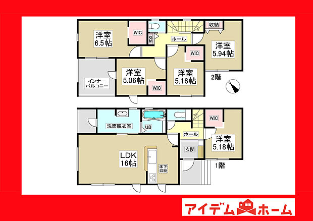 名鉄三河線「竹村」駅徒歩19分!5LDK! 南西角地!全居室南向きで日当たり良好! 雨でも安心なインナーバルコニー!WIC完備でお部屋スッキリ!