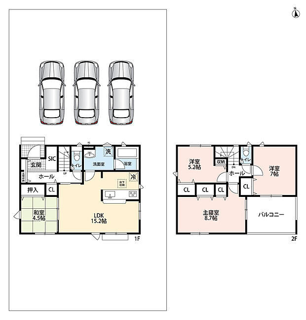 • 「建築条件付き土地」の「建物プラン例」は、土地購入者の設計プランの一例であり、プランの採用可否は任意です。