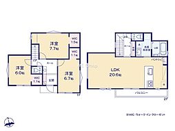 | 間取り | 3SLDK 間取り内訳:リビングダイニングキッチン 21.7帖(1階)・洋室 6帖(2階)・洋室 6帖(2階)・洋室 6帖(2階)・収納 2帖(2階) |
